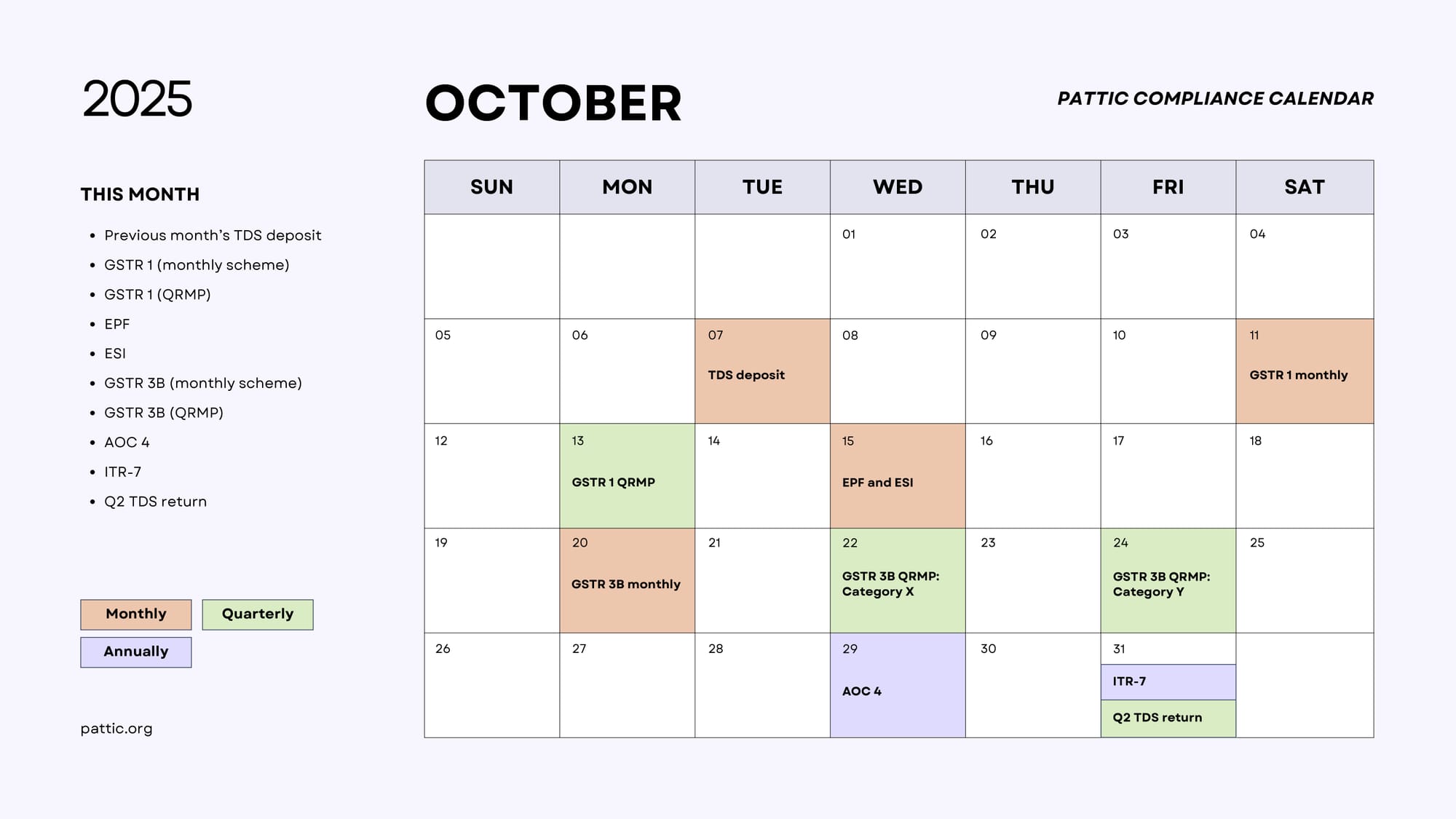 Greetings from PATTIC. Here are your important tax and compliance dates for this month.